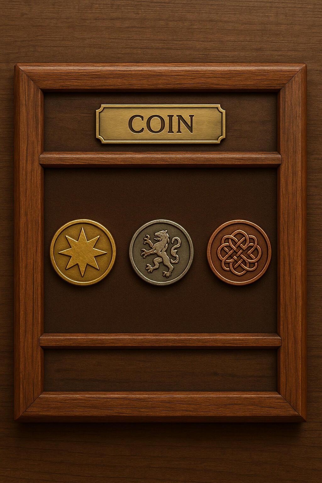 Coin collectors can purchase these and rez them out in world. Put them up on a wall or lay them on a table to show off.