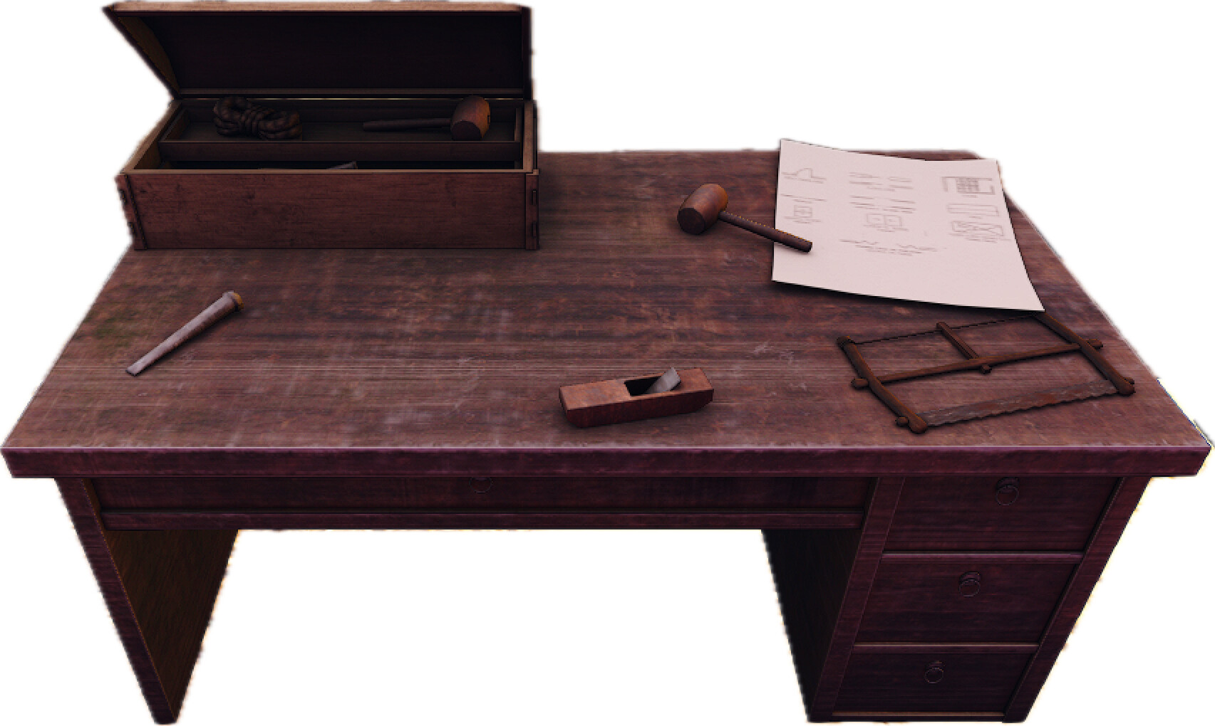 The carpentry table is a crafting table made for the carpenter profession. It allows players of this profession to craft a multitude of tools & weapons, as well as unique furniture & decorations which can be rezzed in world for player homes.